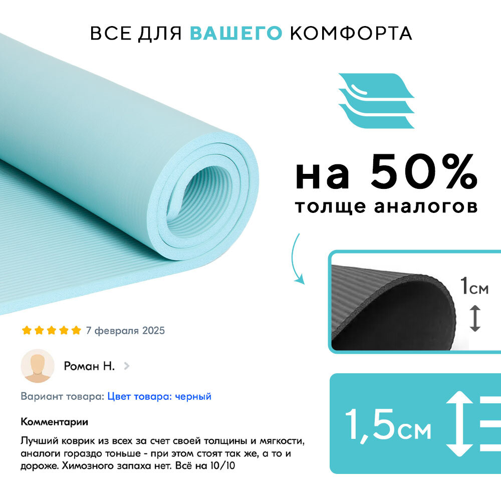 Коврик для йоги 173 х 61 х 0,5 см, цвет чёрный (1 шт.)