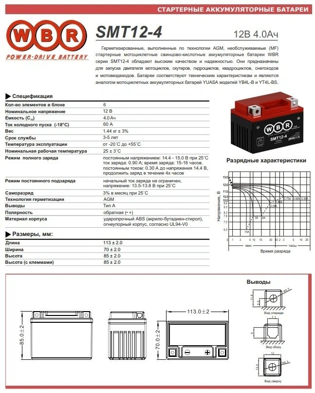 Аккумуляторная батарея Wbr SMT12-4 ( SMT12-4) информация: