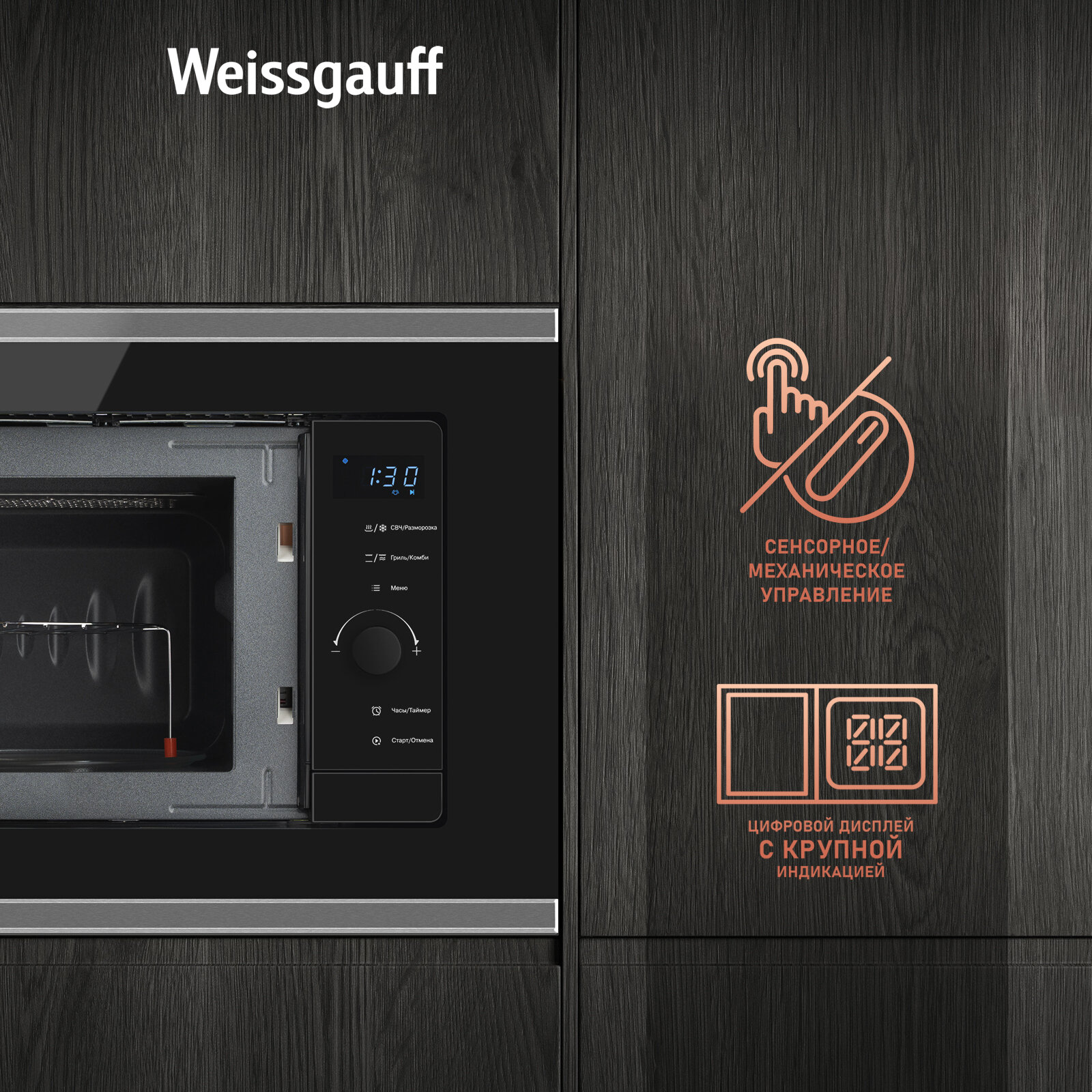 Встраиваемая микроволновая печь Weissgauff HMT-720 BX Grill 3 года гарантии, объем 20 литров, гриль, разморозка по весу, Блокировка от детей информация: