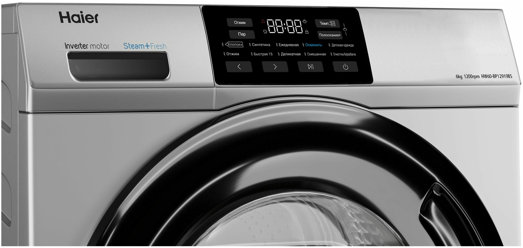 Стиральная машина с фронтальной загрузкой HAIER HW60-BP12919BS инверторный двигатель информация: