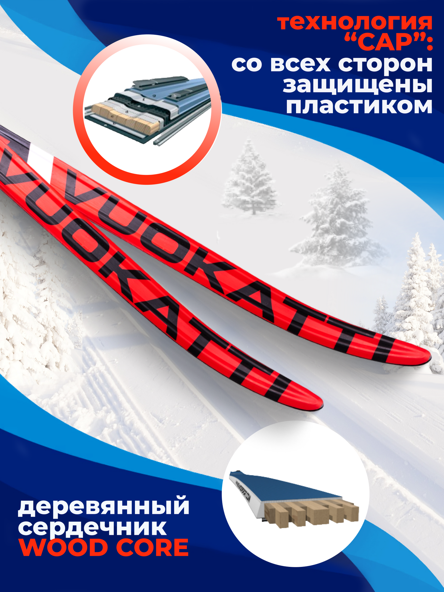 Беговые лыжи взрослые VUOKATTI 185 см с креплением NNN Wax Black/Red информация: