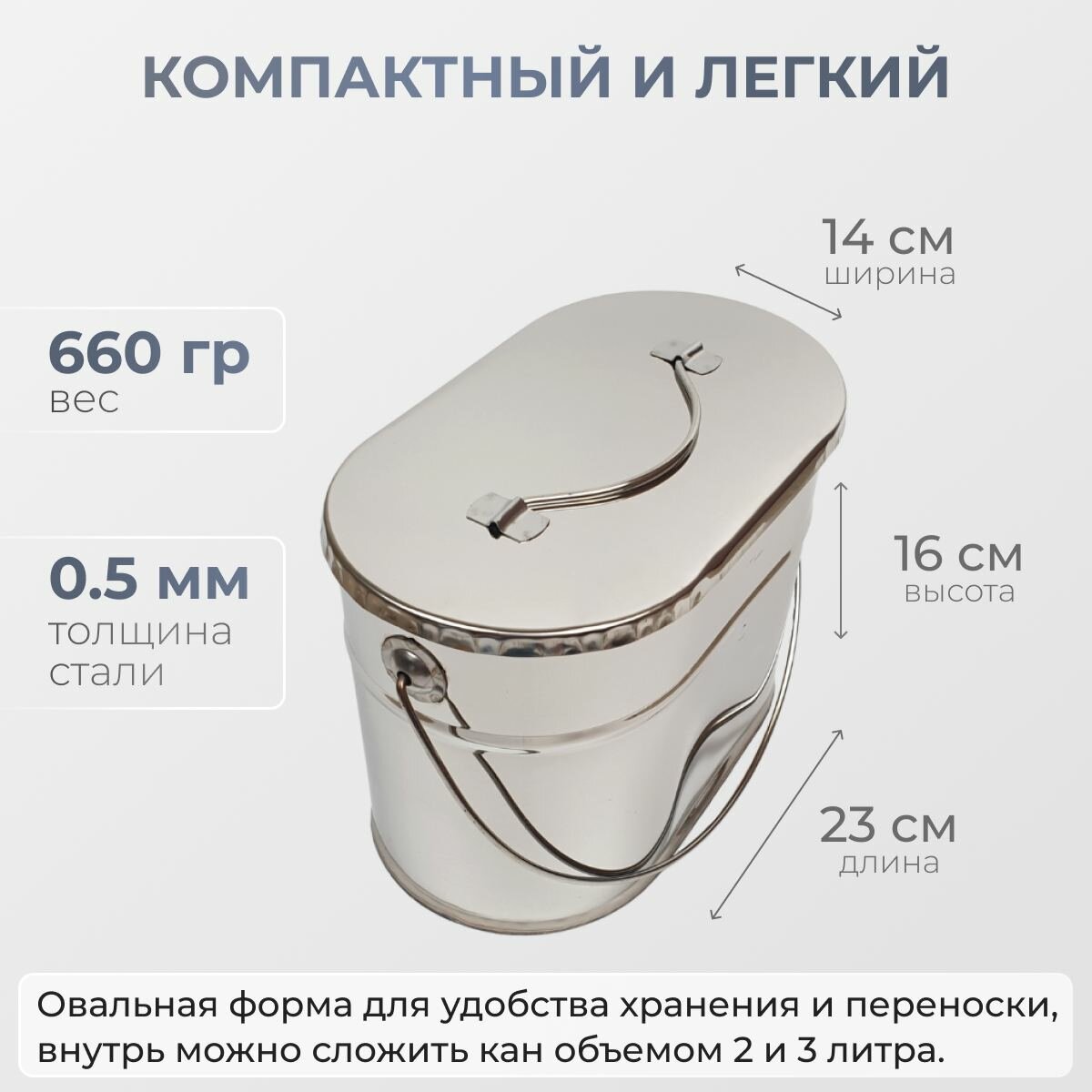 Котелок походный овальный 5 литров из нержавеющей стали, с крышкой 2 800 ₽