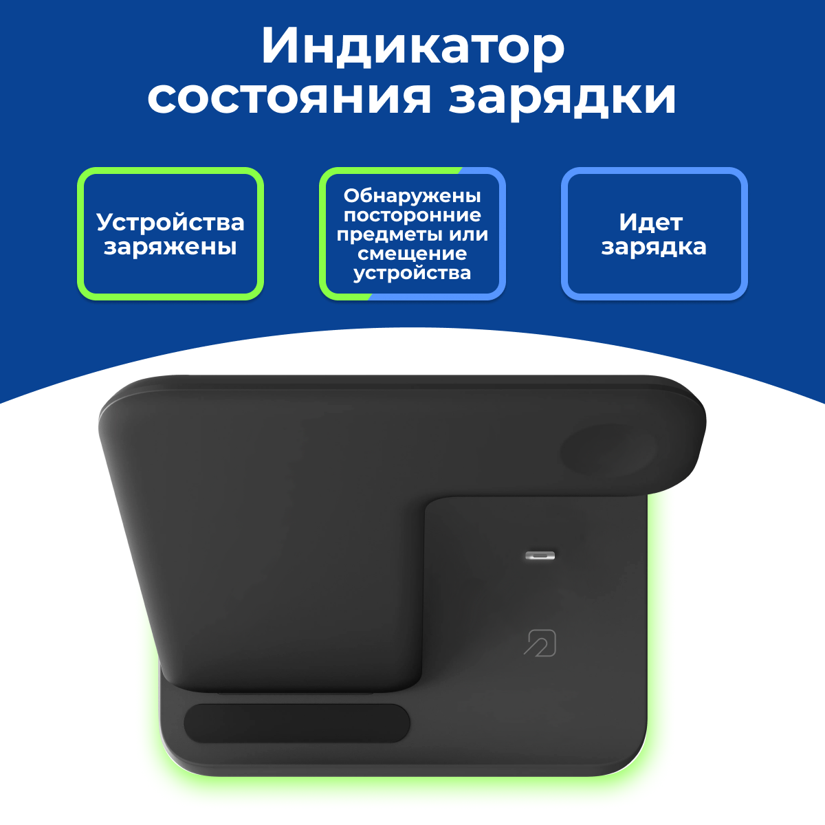 Беспроводная зарядка 3 в 1 для iPhone, Android, Apple Watch, AirPods, Черная