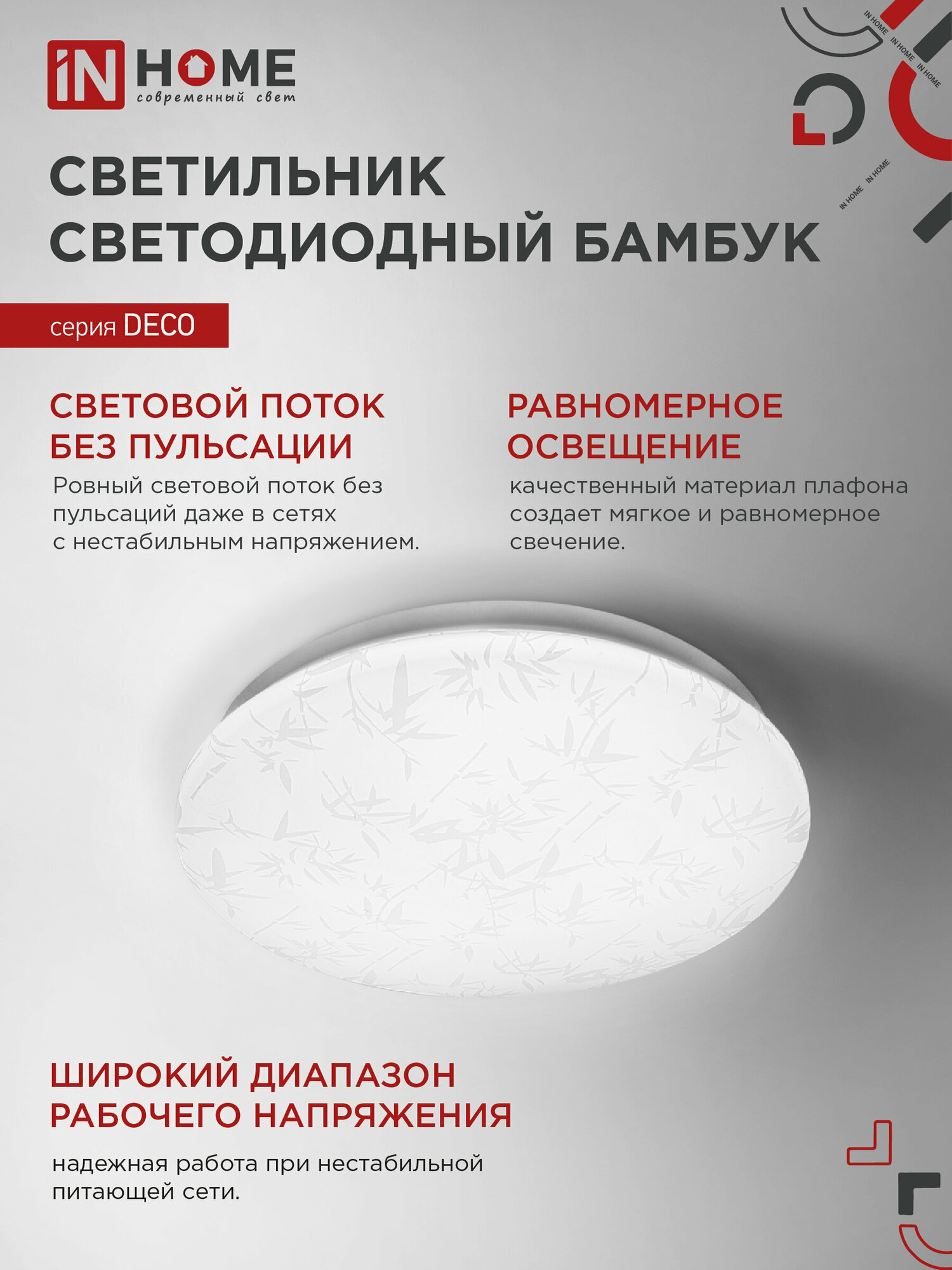 Светильник светодиодный DECO бамбук 36Вт 230В 6500К 2340лм 350мм IN HOME 4690612025056 ( 1шт. )
