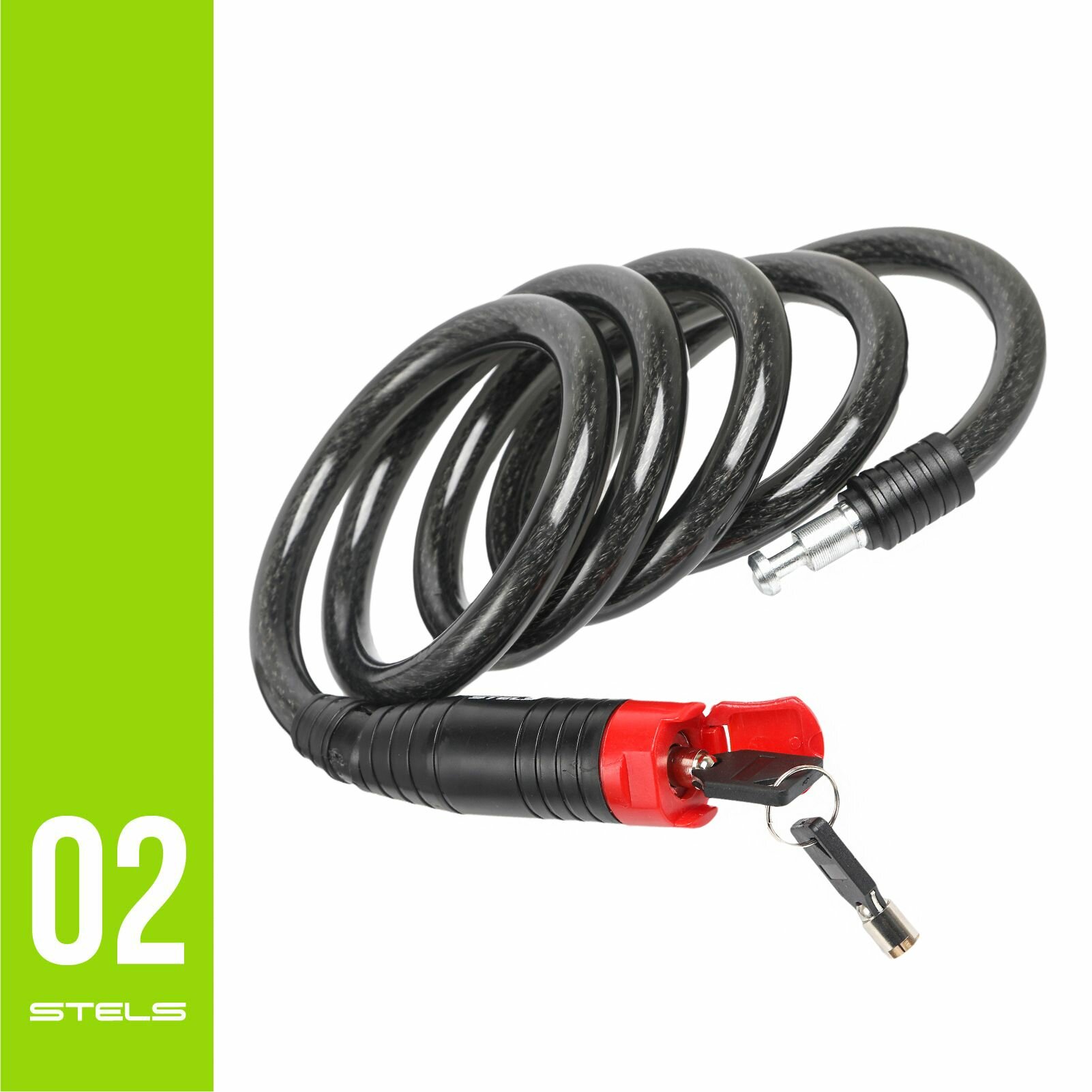 10 цен на Трос-замок STELS 12х1800мм 87202+HL032 с креплением на велосипед, черно-красный NEW