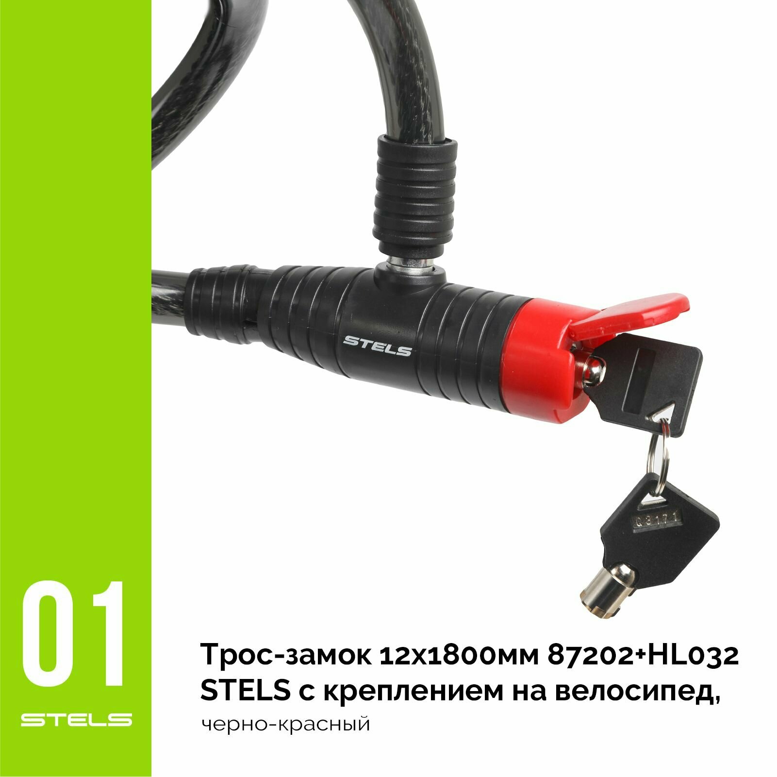 Трос-замок STELS 12х1800мм 87202+HL032 с креплением на велосипед, черно-красный NEW информация: