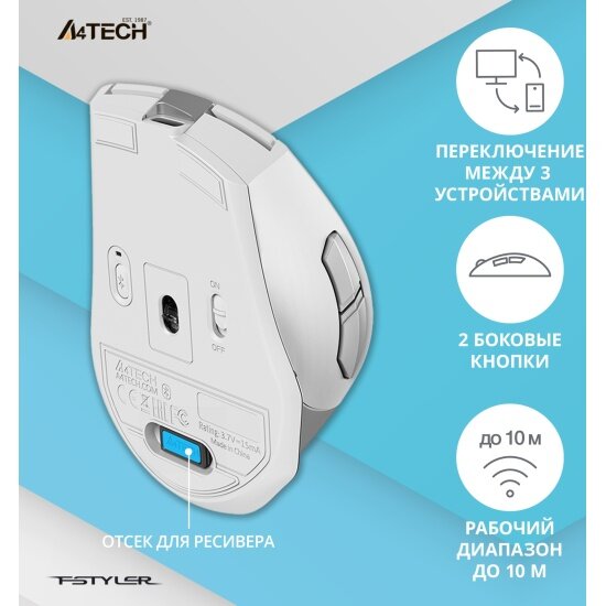 Мышь беспроводная A4TECH Fstyler FB35C белый (FB35C ICY WHITE) информация: