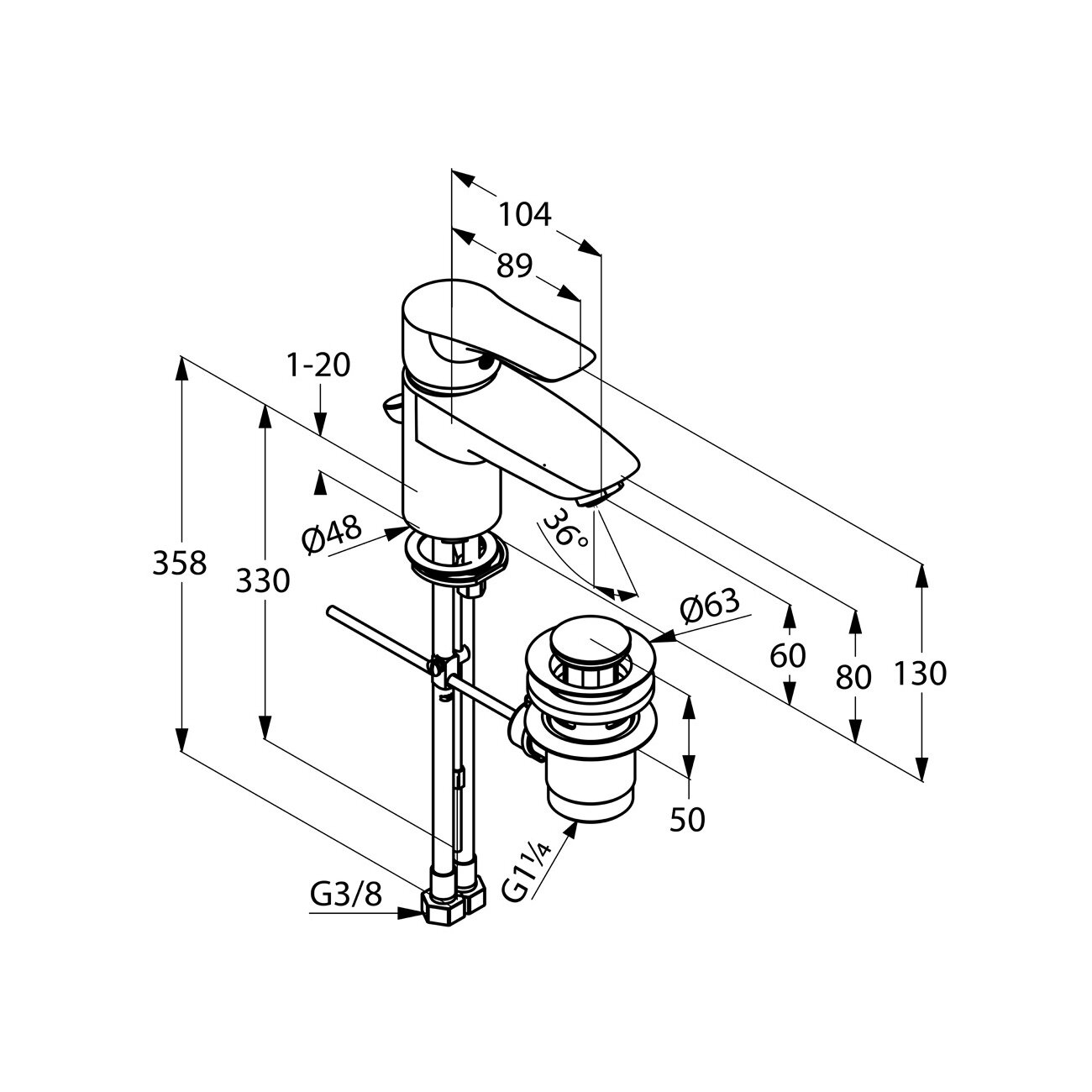 | Длина излива | 104 мм |