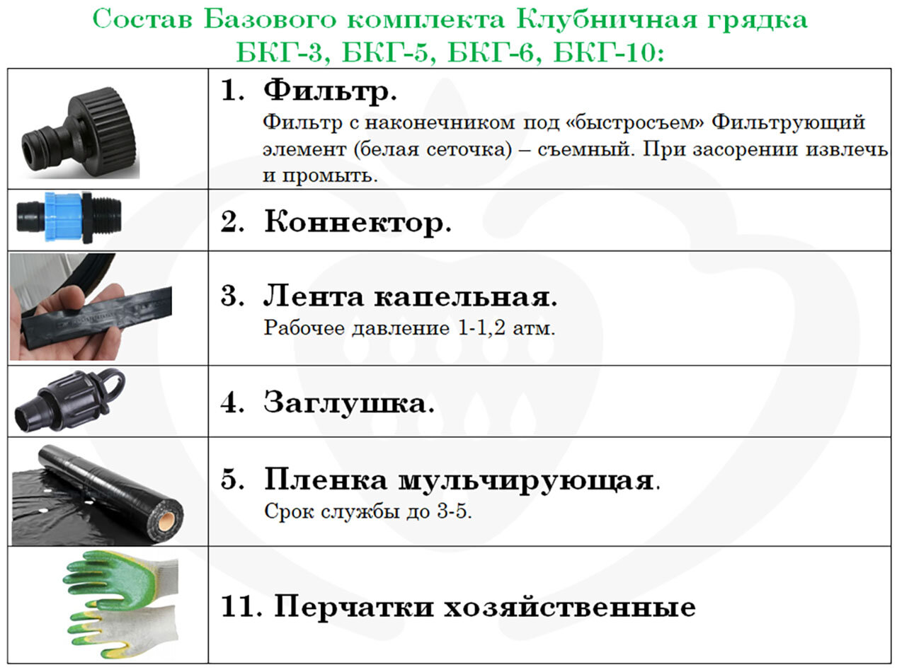 "Клубничная грядка", грядка для клубники с капельным поливом, 5 м, на 35 растений, БКГ-05, Базовый набор информация: