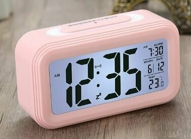 Часы X1019N будильник с автоматической подсветкой, термометром и календарем розовые. информация: