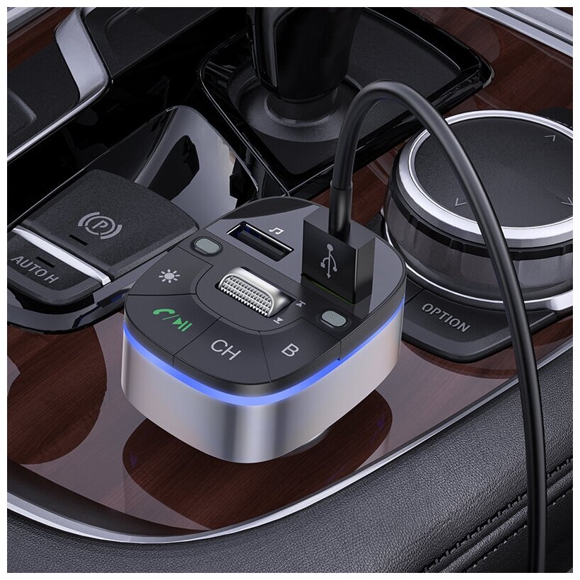 FM-трансмиттер HOCO, E71, Discovery edition, Bluetooth, цвет: синий 1 050 ₽