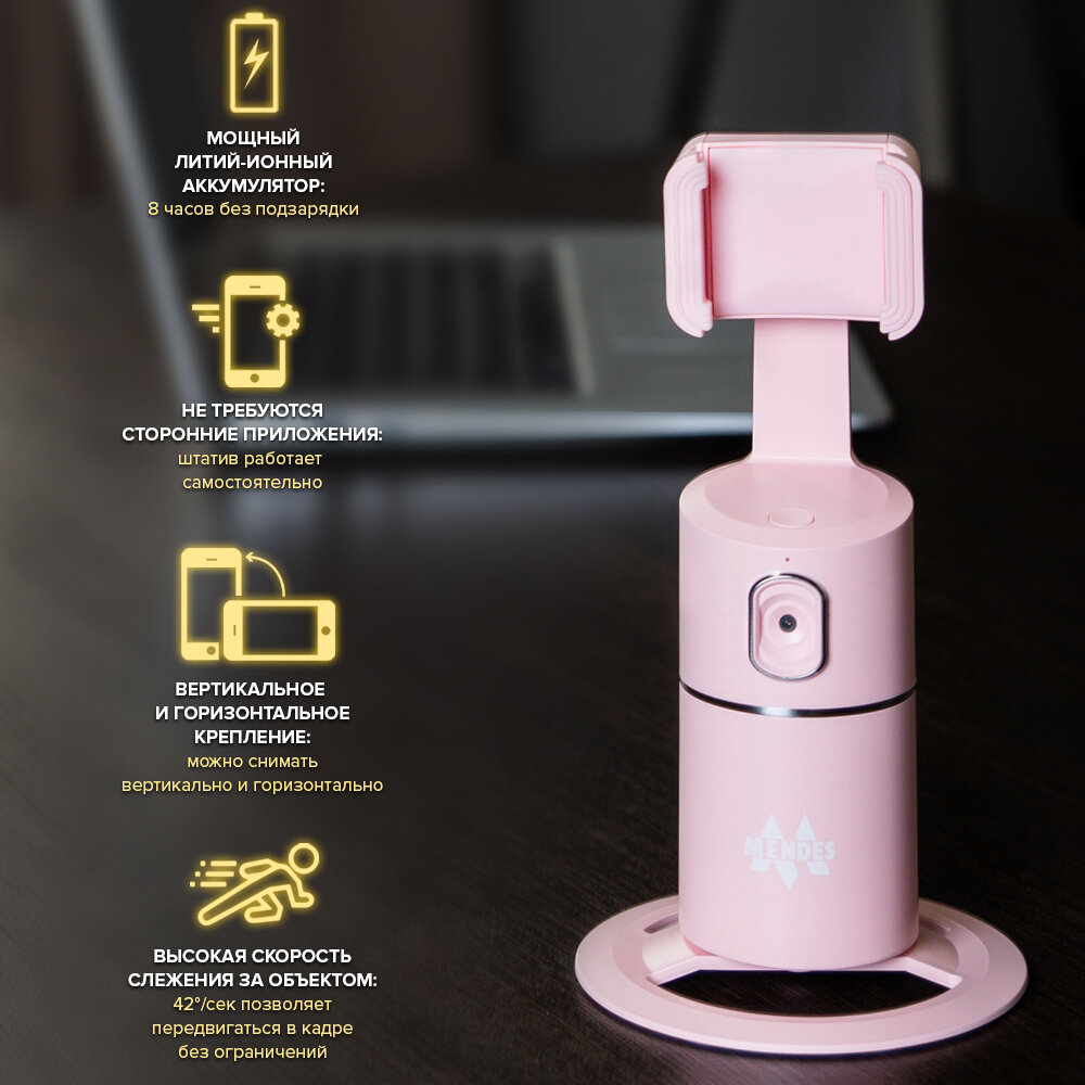 Умный штатив для телефона с функцией слежения и поворотом на 360 монопод Mendes розовый информация: