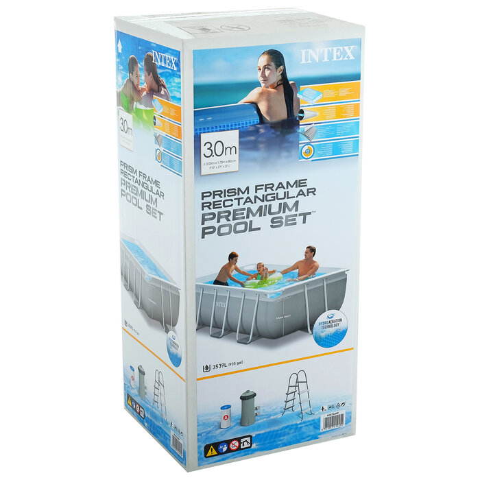 INTEX Прямоугольный каркасный бассейн 26784 Intex Prism Frame 300*175*80 см серый, фильтр-насос, лестница 26784 29 610 ₽