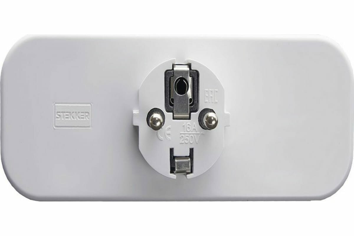 Сетевой разветвитель STEKKER на 3 выхода с заземлением, 250В,16A, белый ADP16-23-20 39024