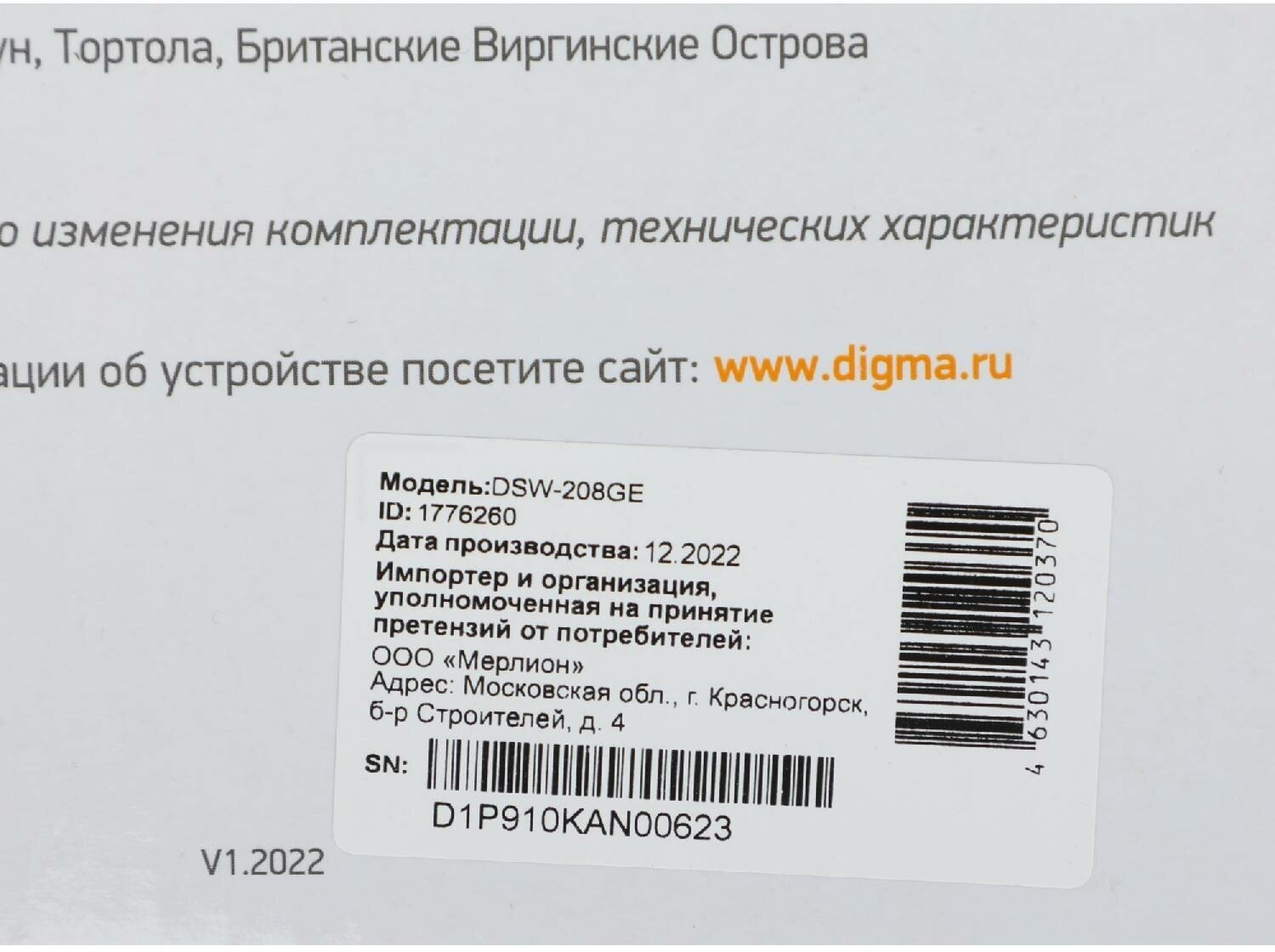 Коммутатор Digma Dsw-208ge 8G неуправляемый . информация: