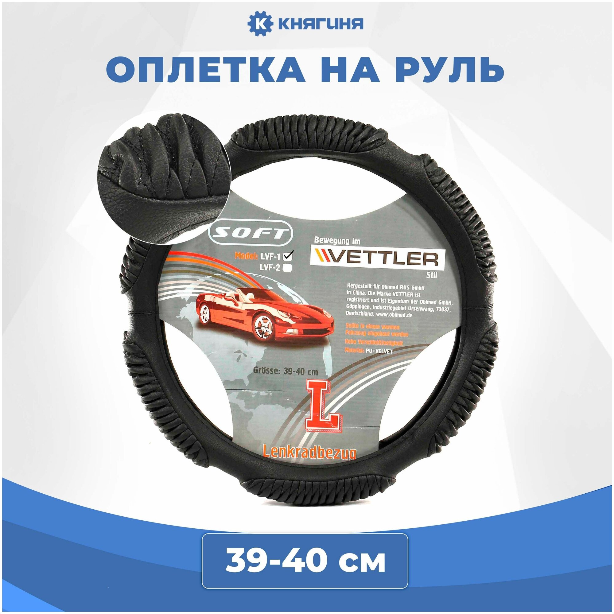 Оплетка на руль Vеttler Soft LVF-1 LLVF1 с 6 подушками экокожа L 39-40см для ВАЗ 2101, 2102, 2103, 2104, 2105, 2106, 2107, ГАЗ 3110 Волга
