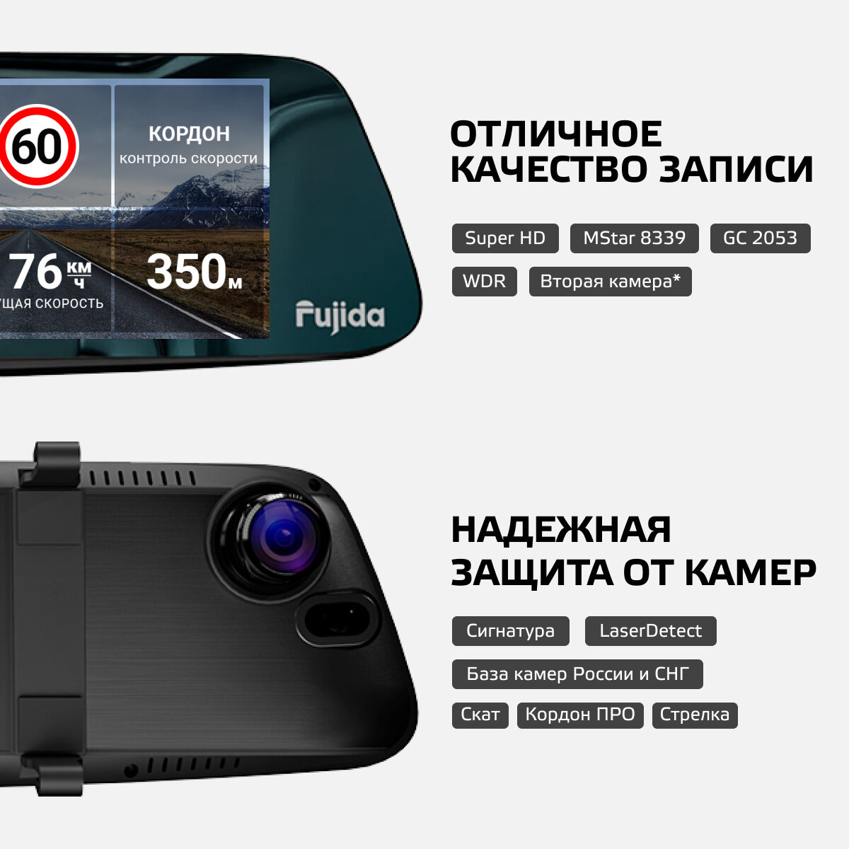 Видеорегистратор зеркало для автомобиля Fujida Karma Blik WiFi с радар-детектором, GPS-информатором и WiFi-модулем информация: