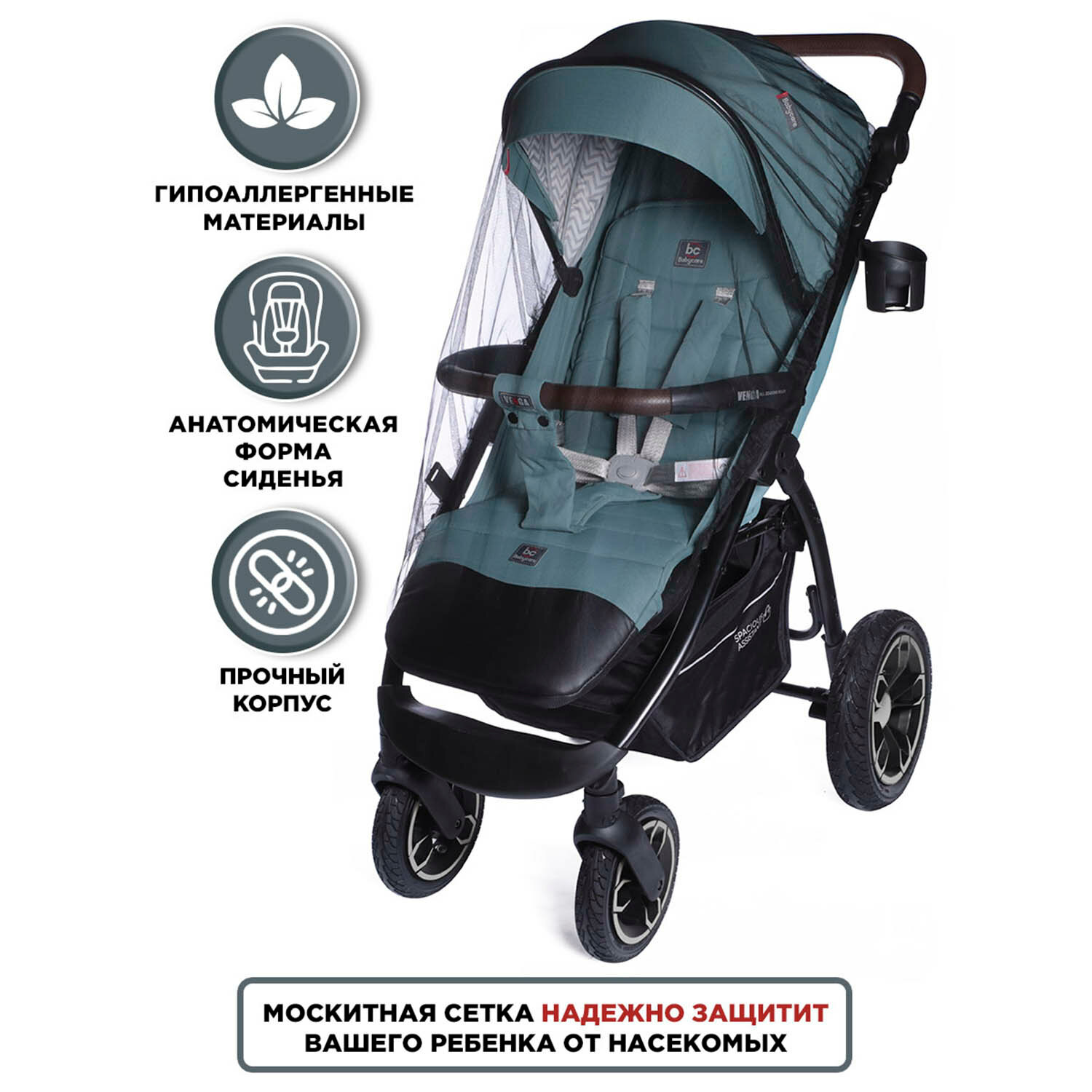 Отзывы на BabyCare Прогулочная коляска Venga с надувными колесами, нагрузка до 22кг, дымчатый изумруд