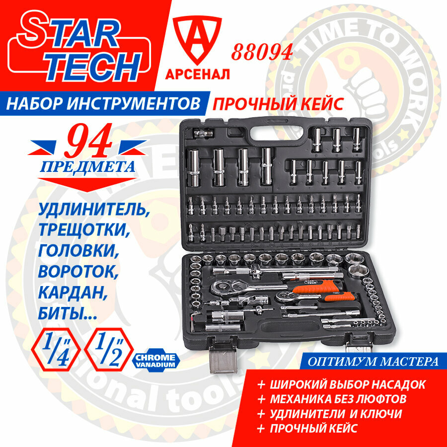 Отзывы на Набор инструментов 94 предмета StarTech 1/2" и 1/4" (головки торцевые, биты), ST88094