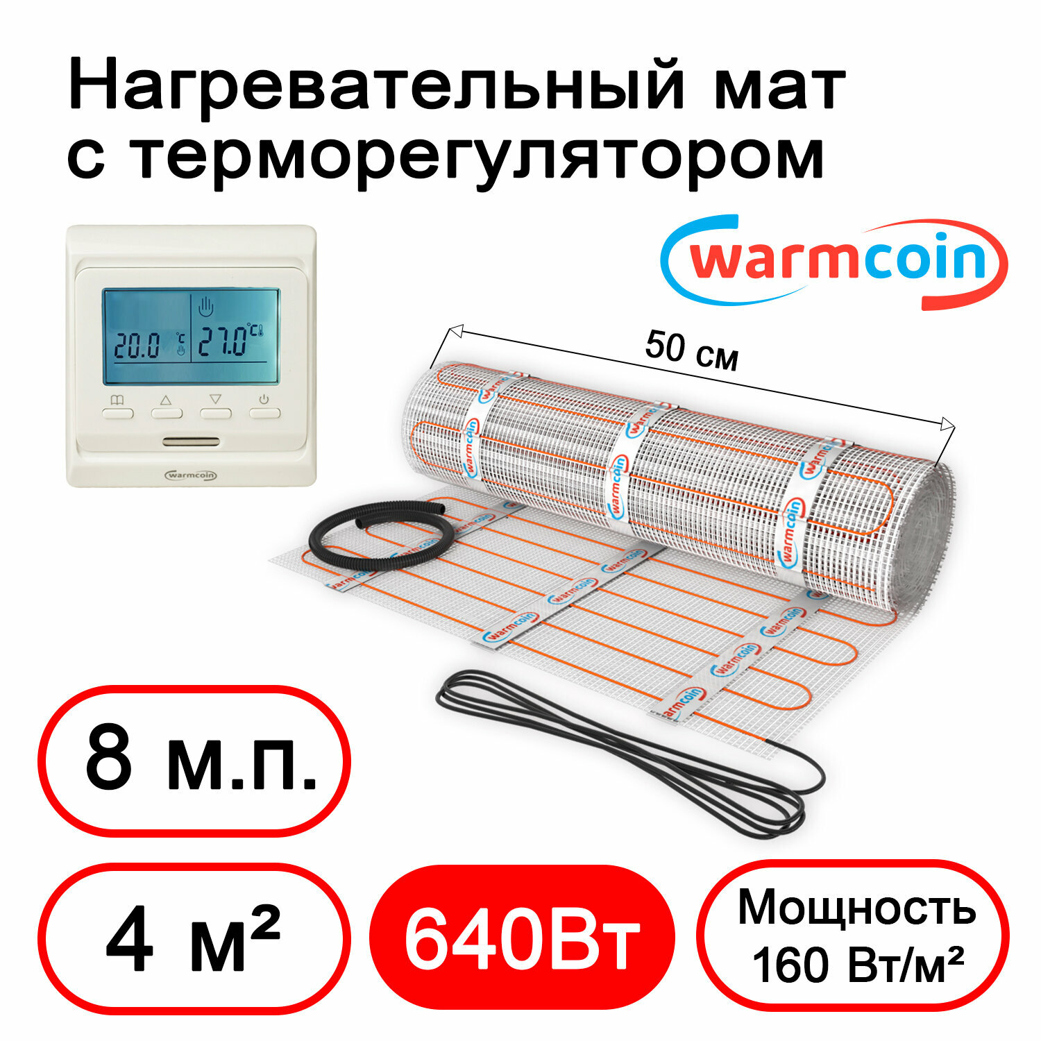 Теплый пол Warmcoin Экомат 4 м.кв. (0.5 х 8 м ) с термостатом