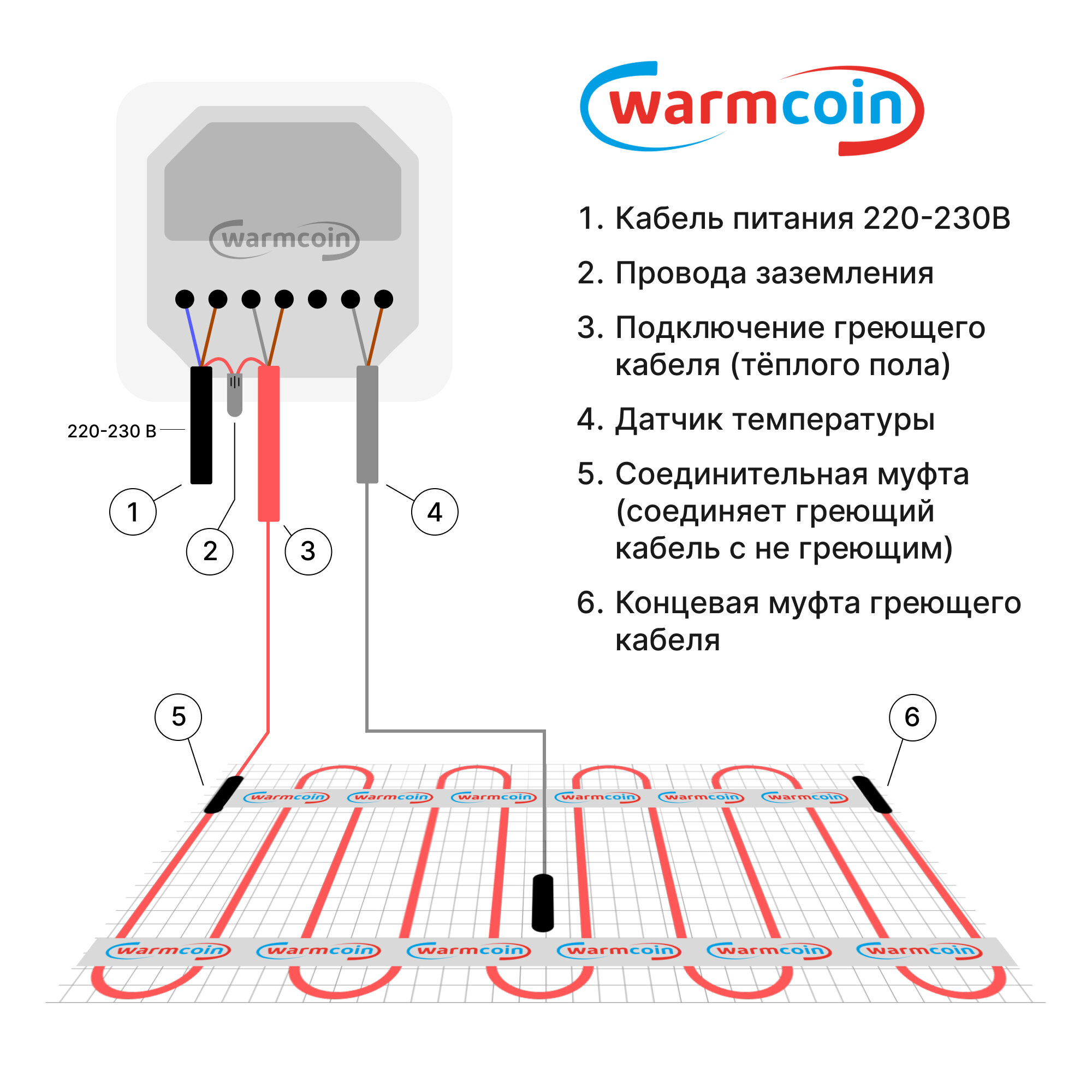 Теплый пол с терморегулятором W51 Warmcoin экомат 4 м. кв. информация: