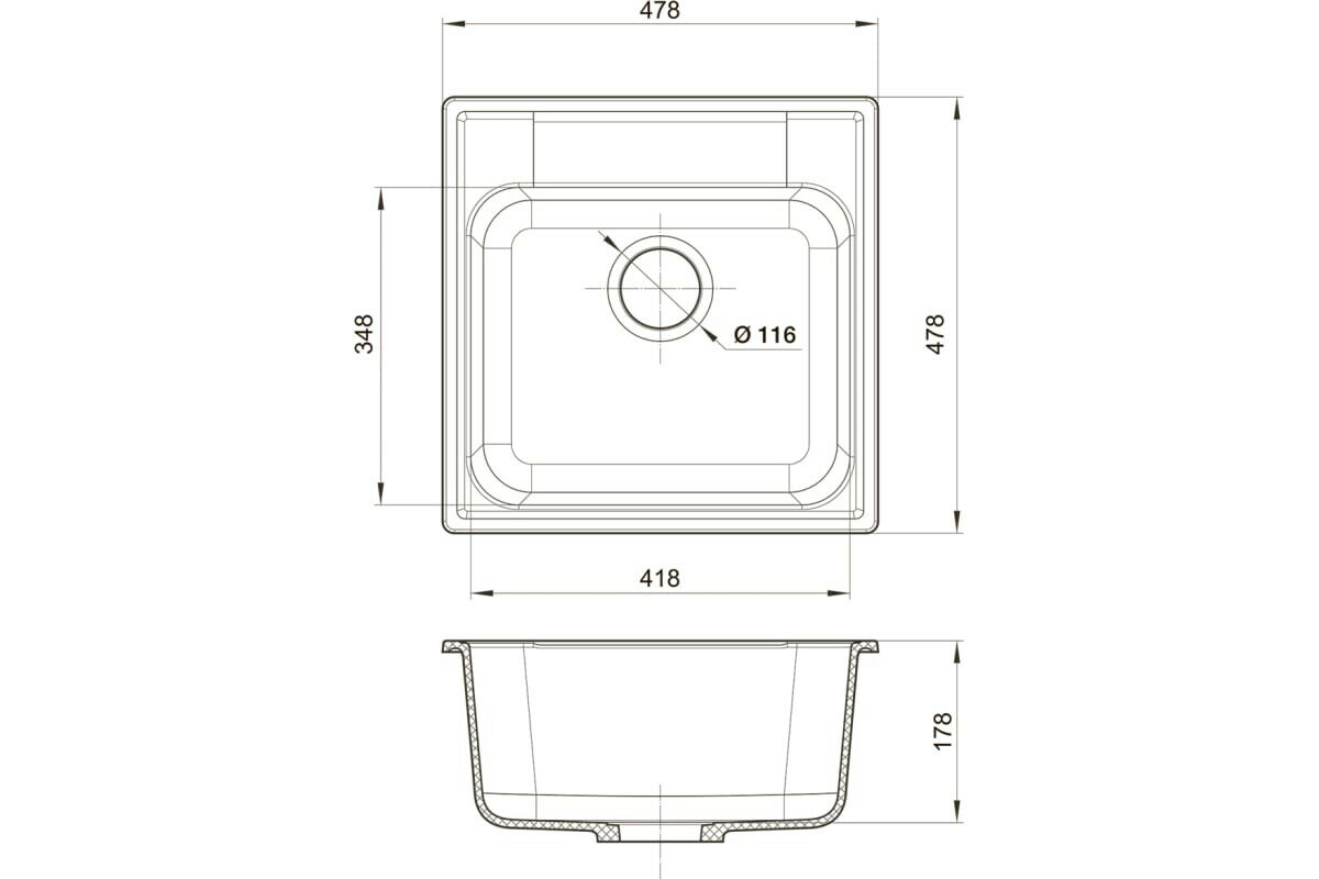 Врезная кухонная мойка Reflection Arena RF0148, 48х48см, кварц