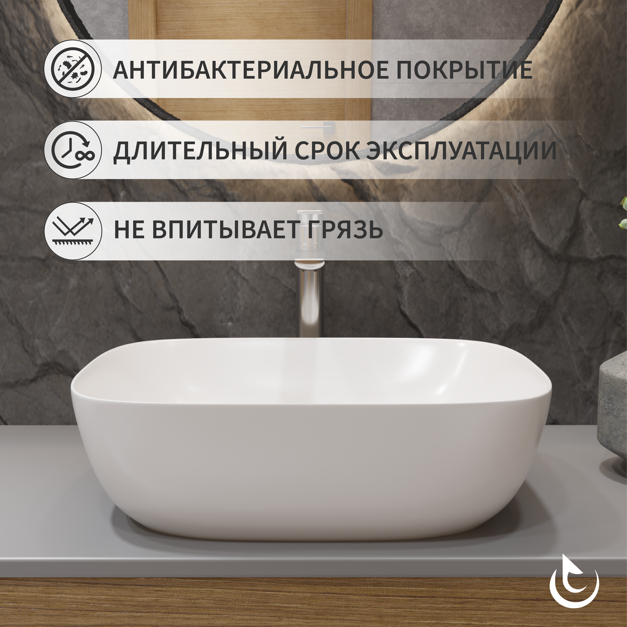 Накладная раковина в ванную Helmken 49349000: умывальник прямоугольный из фарфора 49,5 см, белый цвет, гарантия 25 лет 9 223 ₽