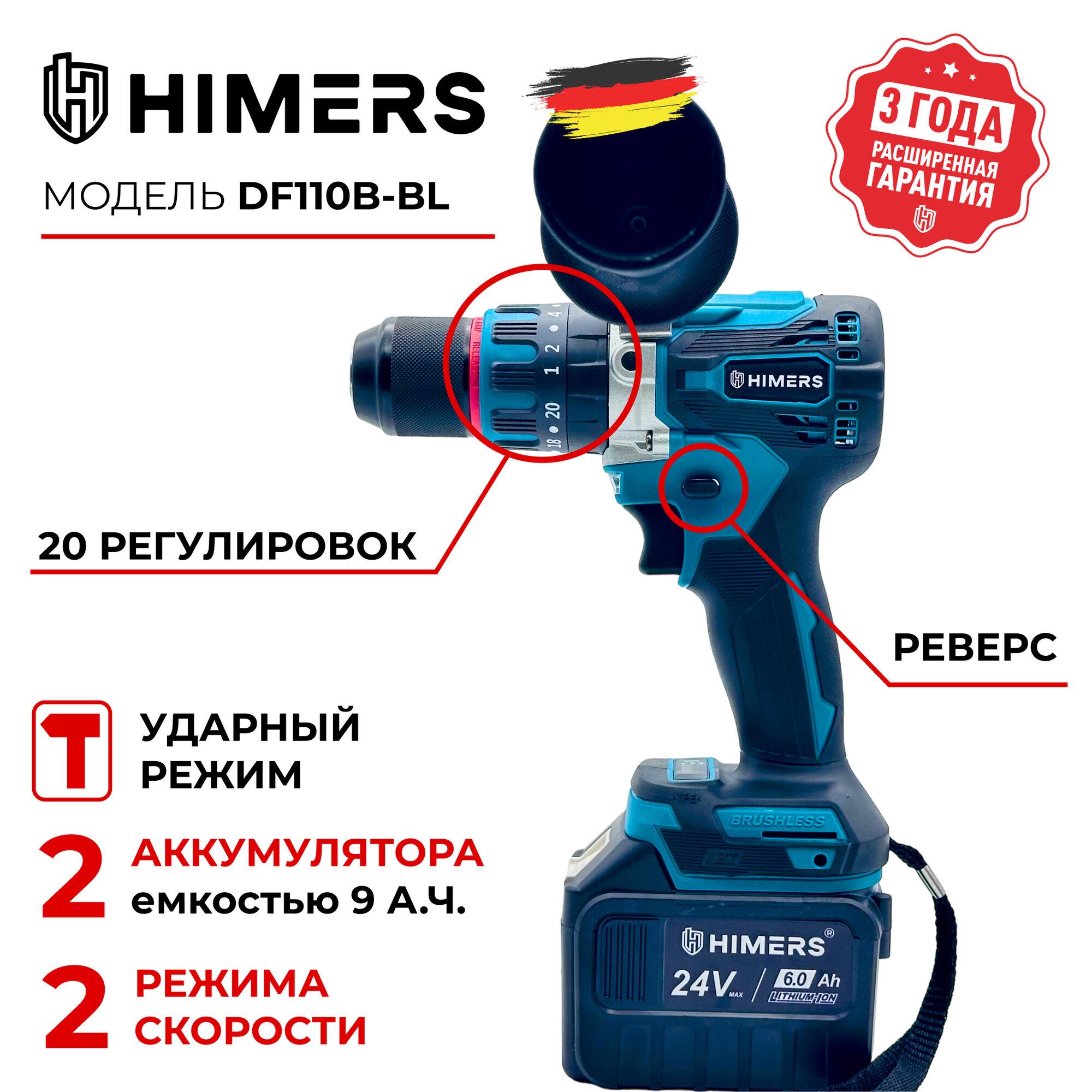 Ледоруб Бесщеточный шуруповерт HIMERS DF110B-BL аккумуляторный 24V, 2 АКБ по 9 А. ч, 110 Н. м, Кейс / для сверления, закручивания 24в ледобур 13 500 ₽