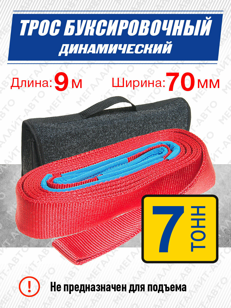 Трос буксировочный MEGAPOWER M-75079 динамический 7т 9м ленточный без крюков в сумке информация: