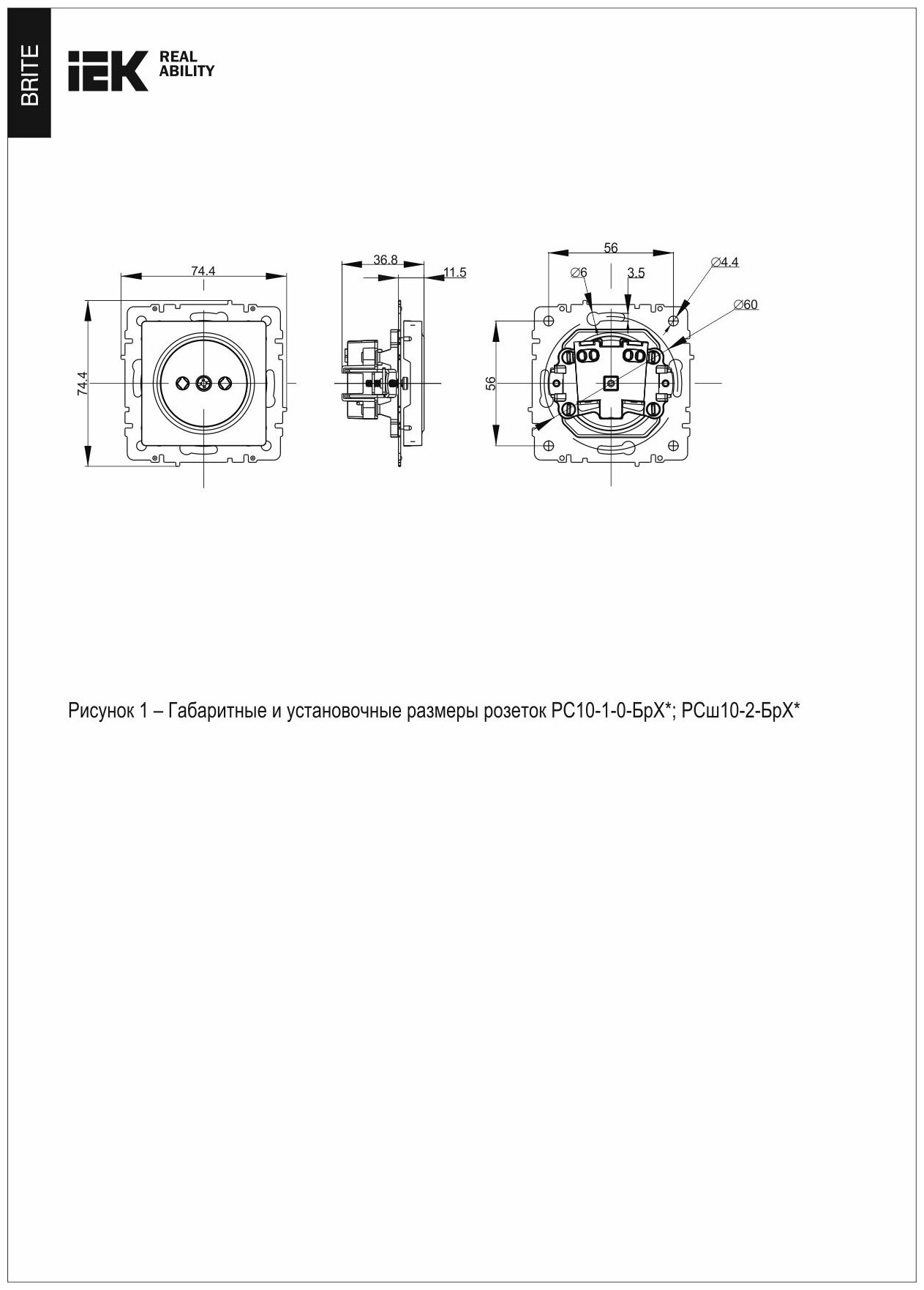 BR-R10-10-K37 Розетка IEK РС10-1-0-БрШ Brite скрытый монтаж, шампань 305 ₽