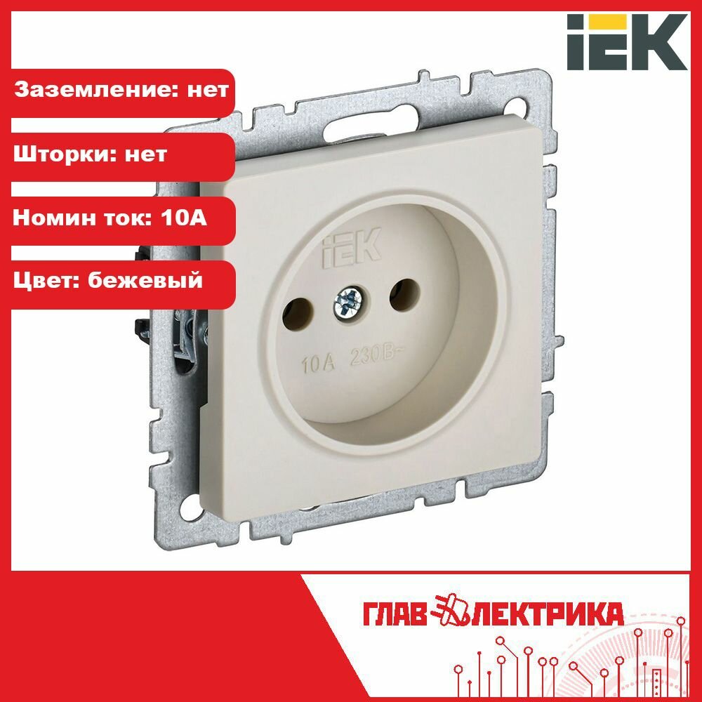 IEK BRITE Роз. без з/к/ш 10А РС10-1-0-БрКр беж., IEK, арт.BR-R10-10-K10 информация:
