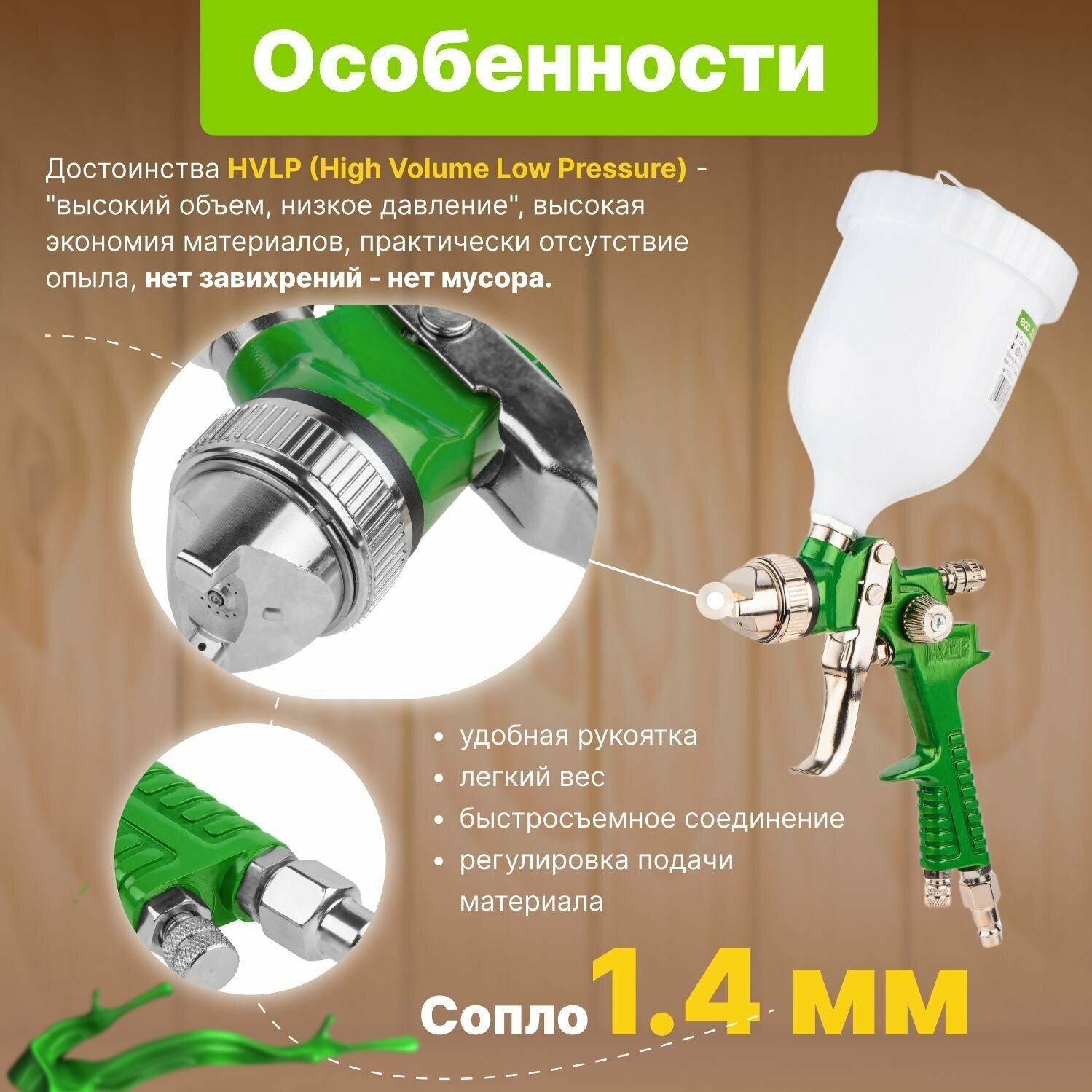 Краскораспылитель Eco SG-8000 (HVLP, сопло ф 1.4 мм, верхний бак 600 мл) (EC1534-14) 1 581 ₽