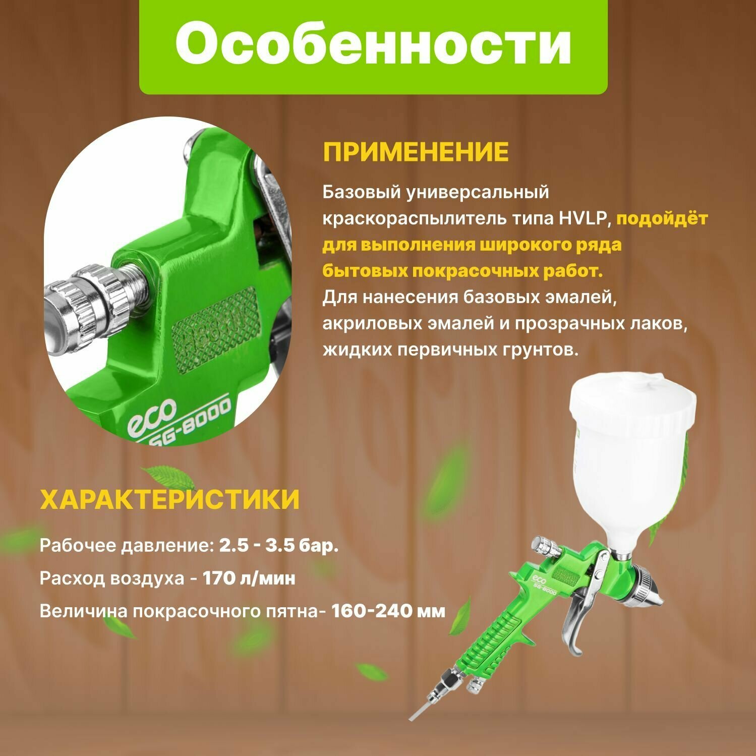Краскораспылитель ECO SG-8000 (сопло ф 1.4 мм) (HVLP, сопло ф 1.4 мм, верх. бак 600 мл) (EC1534-14)