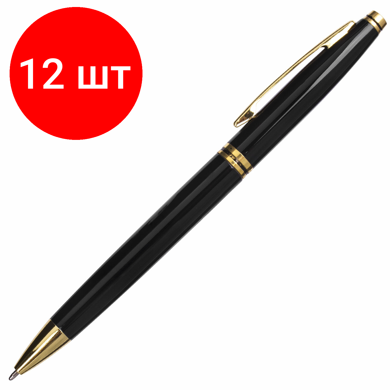 Комплект 12 шт, Ручка подарочная шариковая BRAUBERG "De Luxe Black", корпус черный, узел 1 мм, линия письма 0.7 мм, синяя, 141411 информация: