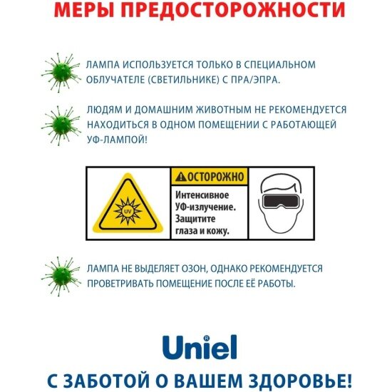 Отзывы на Лампа ультрафиолетовая бактерицидная Uniel EFL-T8-36/UVCB/G13/CL Спектр UVC 253,7нм. Картон. ТМ
