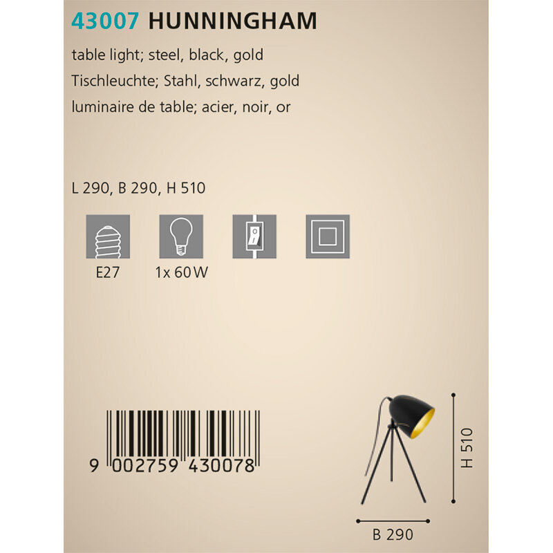 Интерьерная настольная лампа на треноге с выключателем Hunningham 43007 информация: