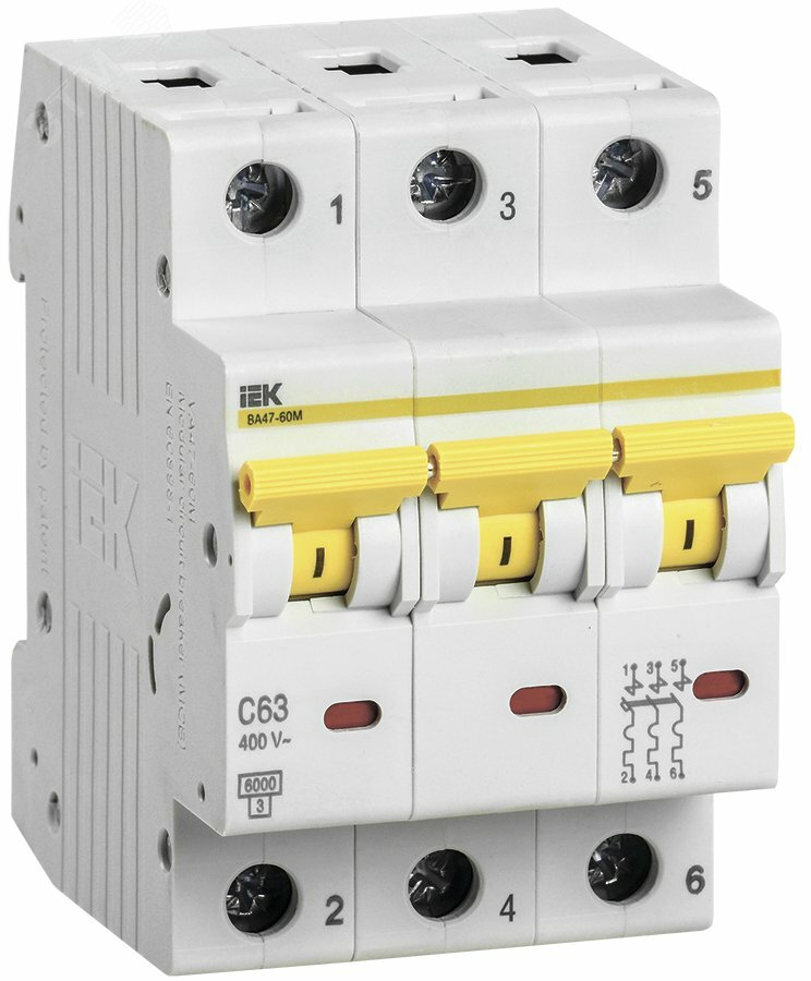 5шт. - Выключатель автоматический ВА47-60M 3Р 63А 6кА С / IEK; арт. MVA31-3-063-C; оригинал / - комплект 5шт информация: