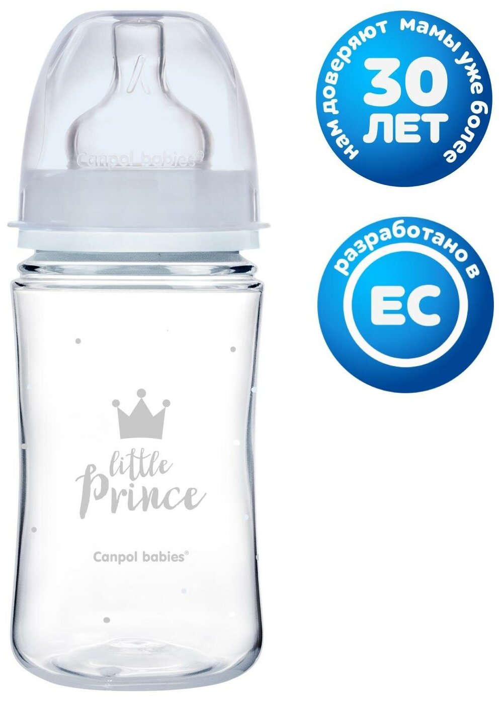 Бутылочка для кормления Canpol babies Royal Baby широкое горлышко, 3 мес+, голубая, 240 мл