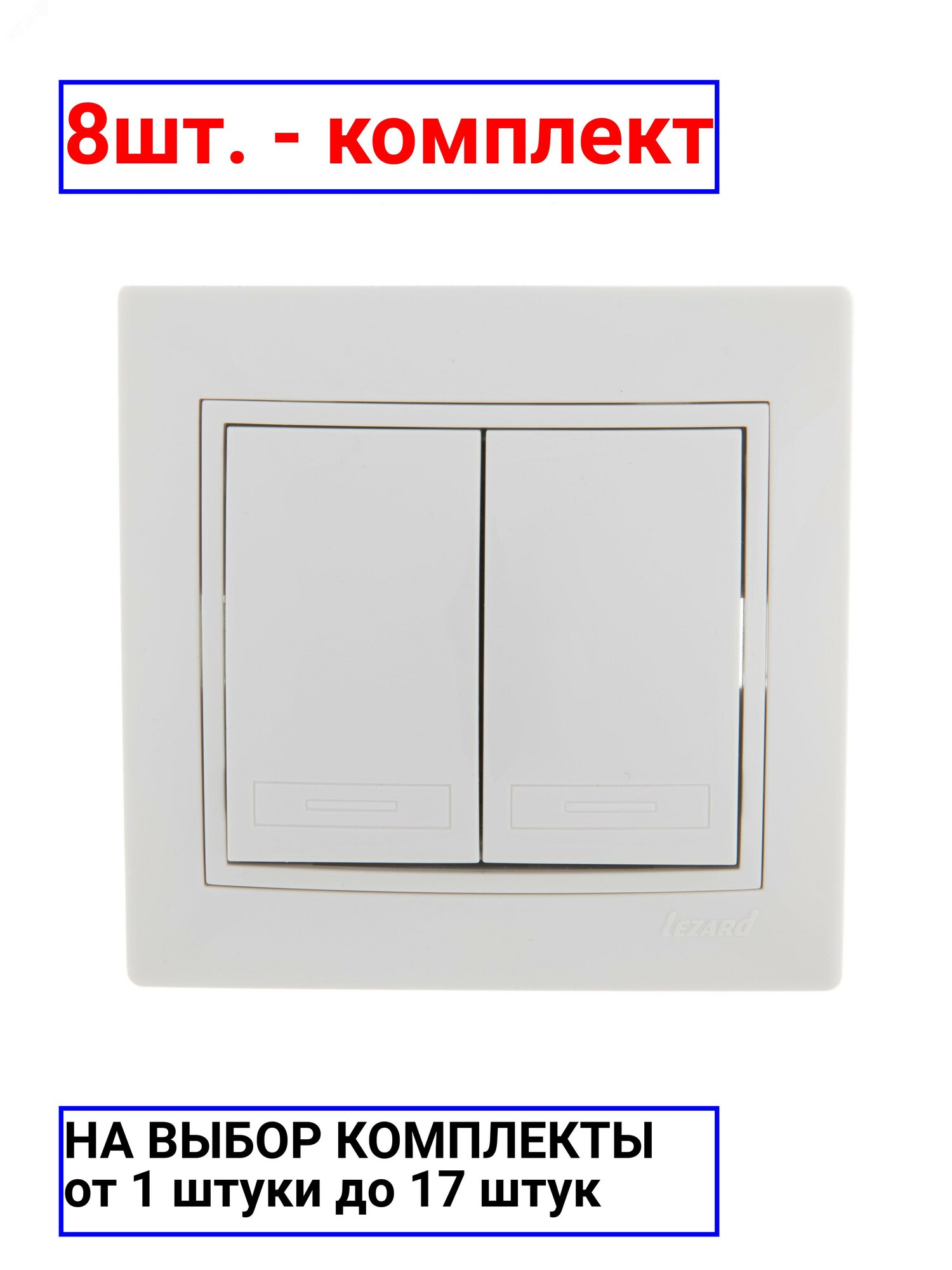 Отзывы на 8шт. - MIRA Выключатель двухклавишный белый с белой вставкой / Lezard; арт. 701-0202-101; оригинал / - комплект 8шт