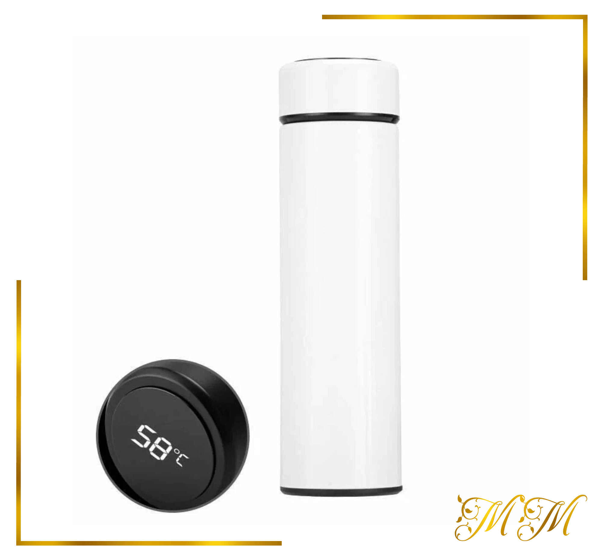Термос с LCD дисплеем Белый / Термос с датчиком (индикатором) температуры / Термобутылка / Автокружка