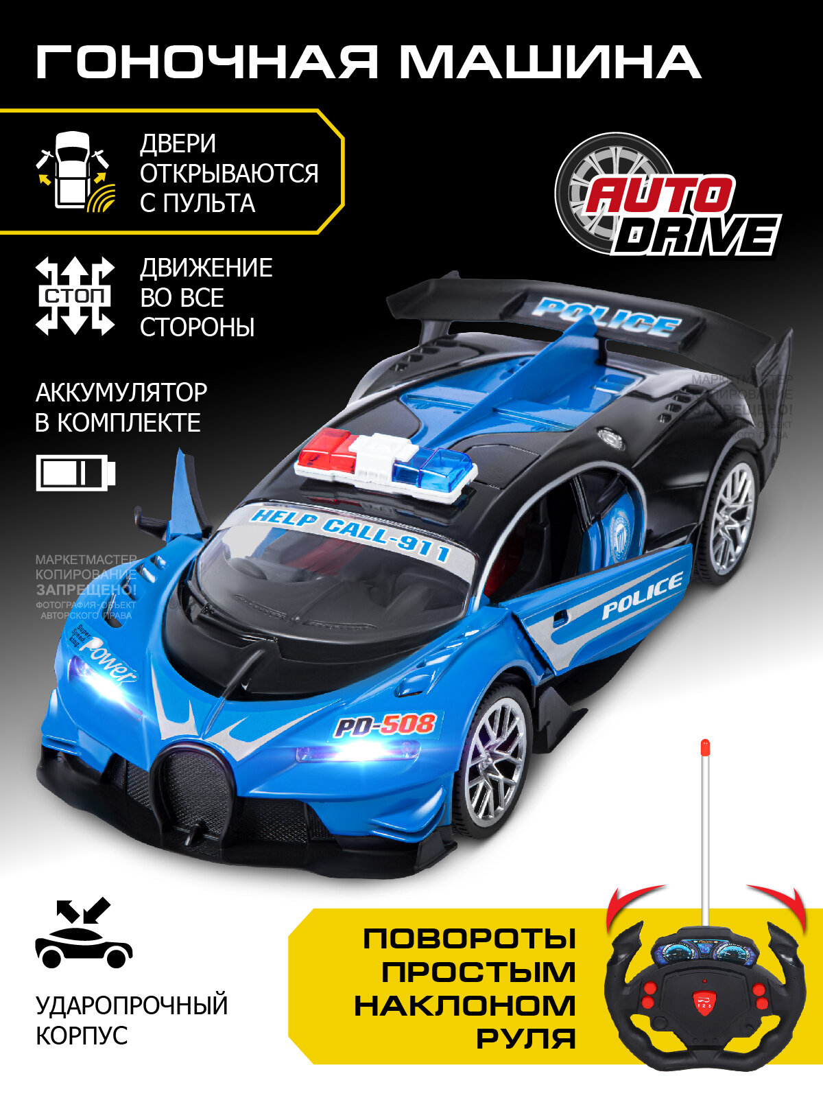 Игрушка на радиоуправлении AUTODRIVE полицйская гоночная 1:14 с пультом руль 5 каналов 27MHz JB1168460 7 350 ₽