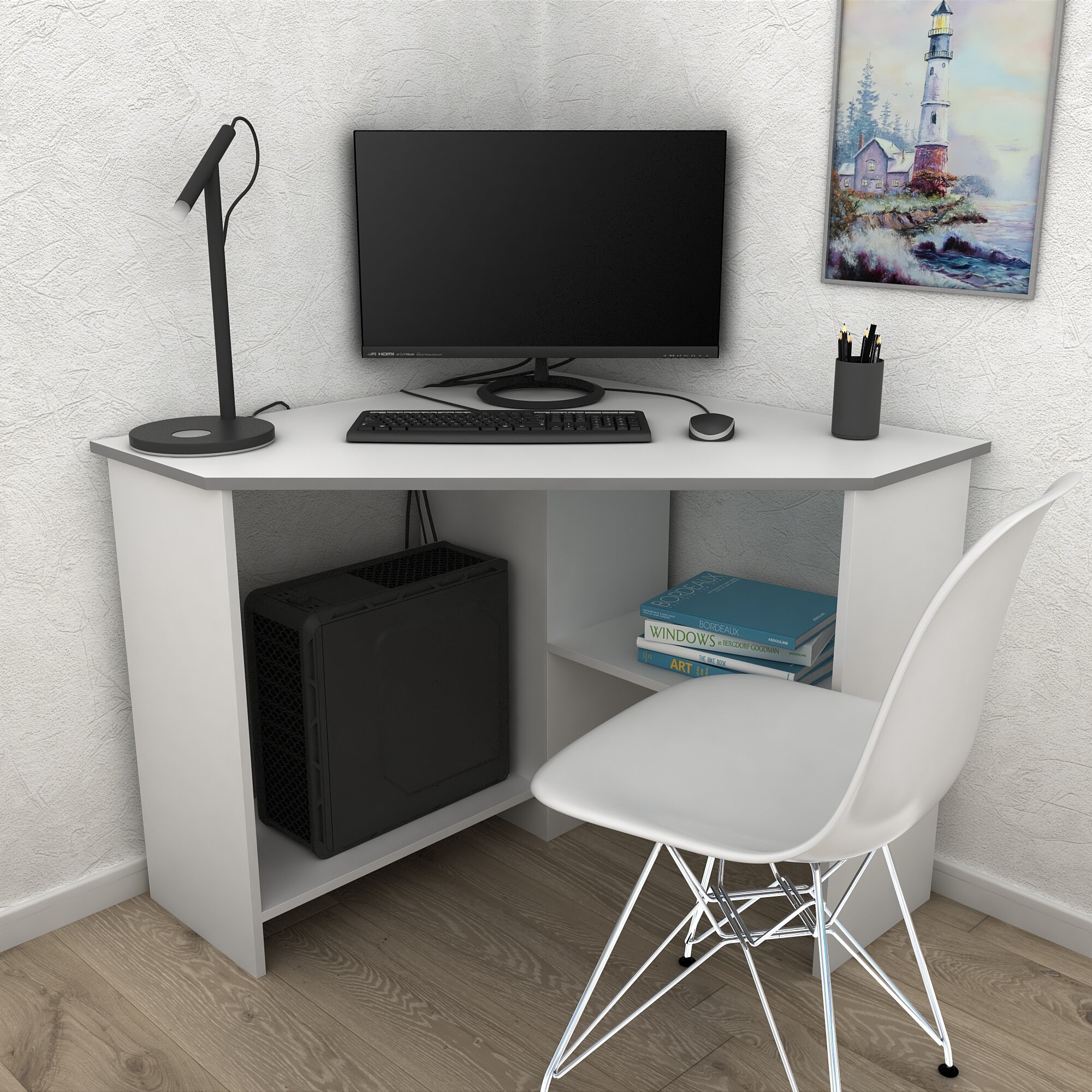 Письменный стол, компьютерный стол угловой с полками Corner 900 Белый, 90*90 см. 4 190 ₽