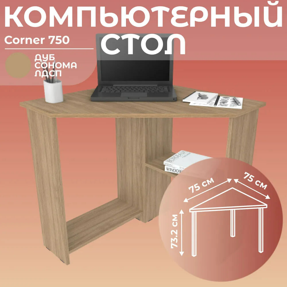 Стол письменный угловой компьютерный Corner 750 Дуб Сонома, 75*75 см информация: