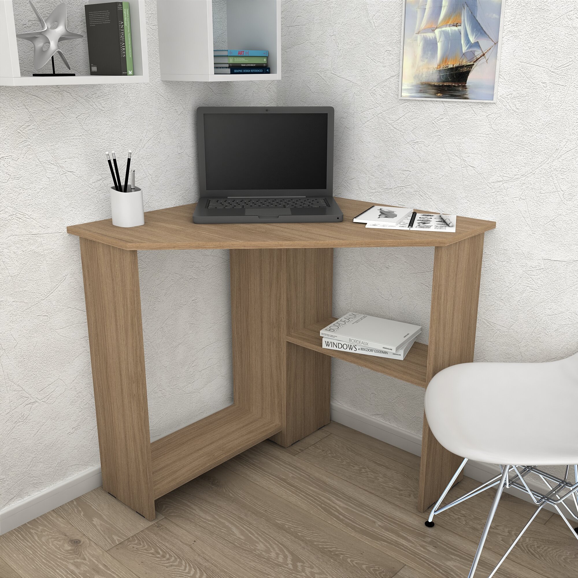 Письменный стол, компьютерный стол угловой с полками Corner 900 Дуб Сонома, 90*90 см. 4 190 ₽