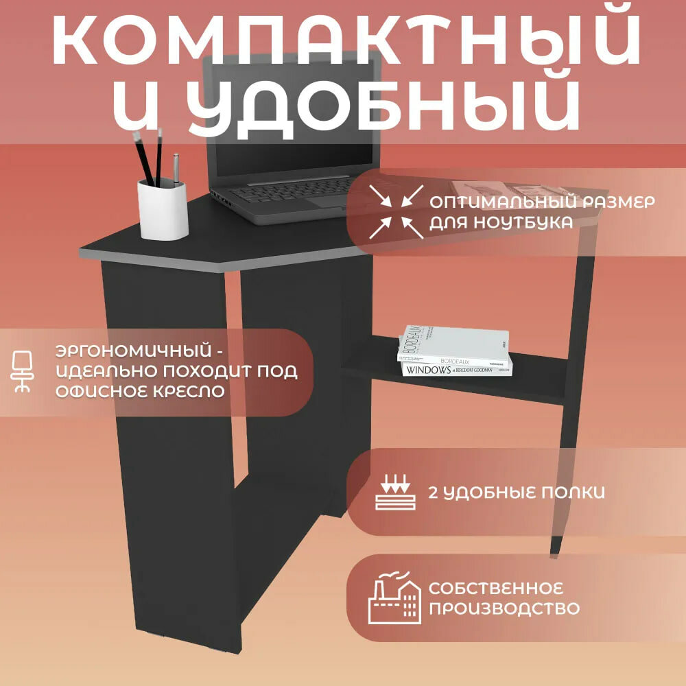 Письменный стол, компьютерный стол угловой с полками Corner 900 Черный, 90*90 см. 4 190 ₽