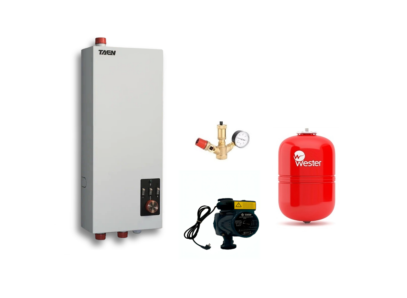 Электрический котел TAEN NOVA 6 кВт (производство ZOTA), насос TAEN 25/4 с кабелем, TAEN Группа безопасности, Бак Wester WRV 8 информация: