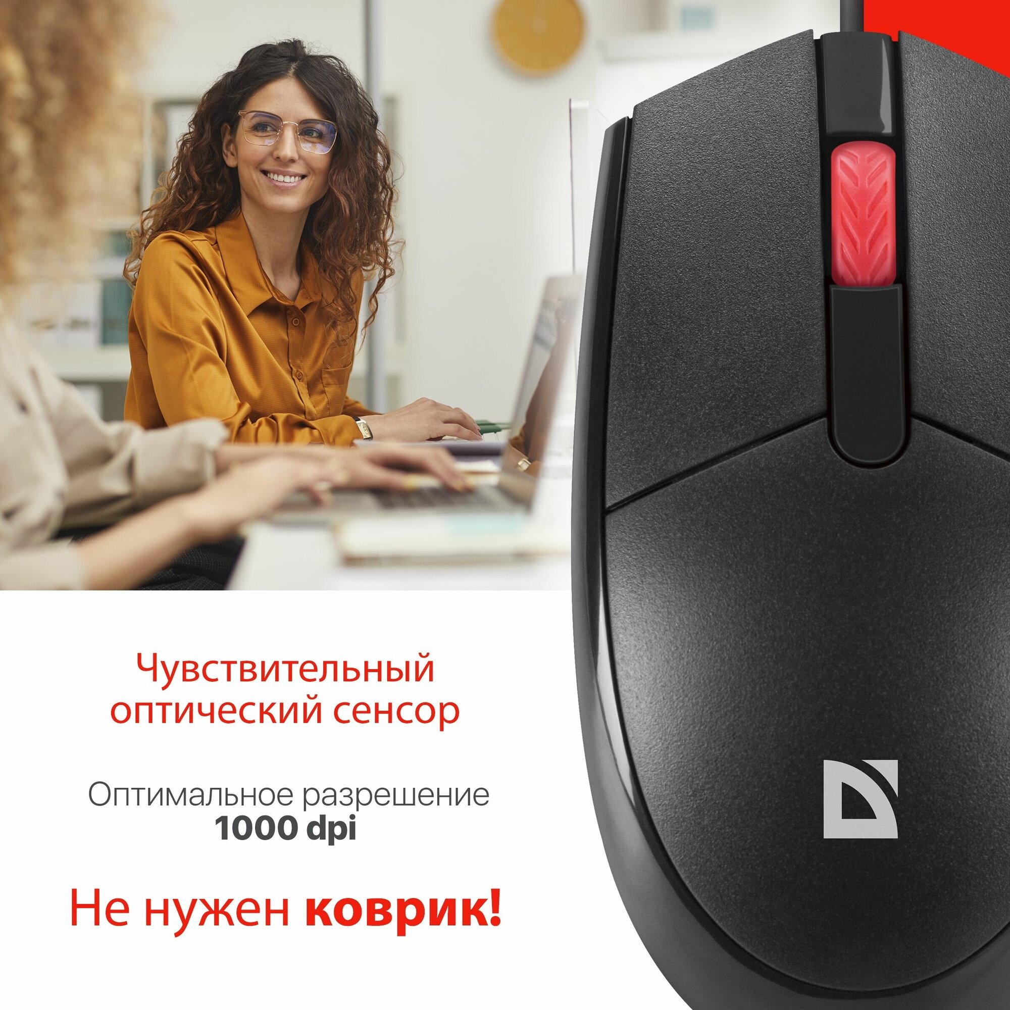Проводная оптическая мышь Defender Delta MM-523 черн,3D, бесшумная,1,8м