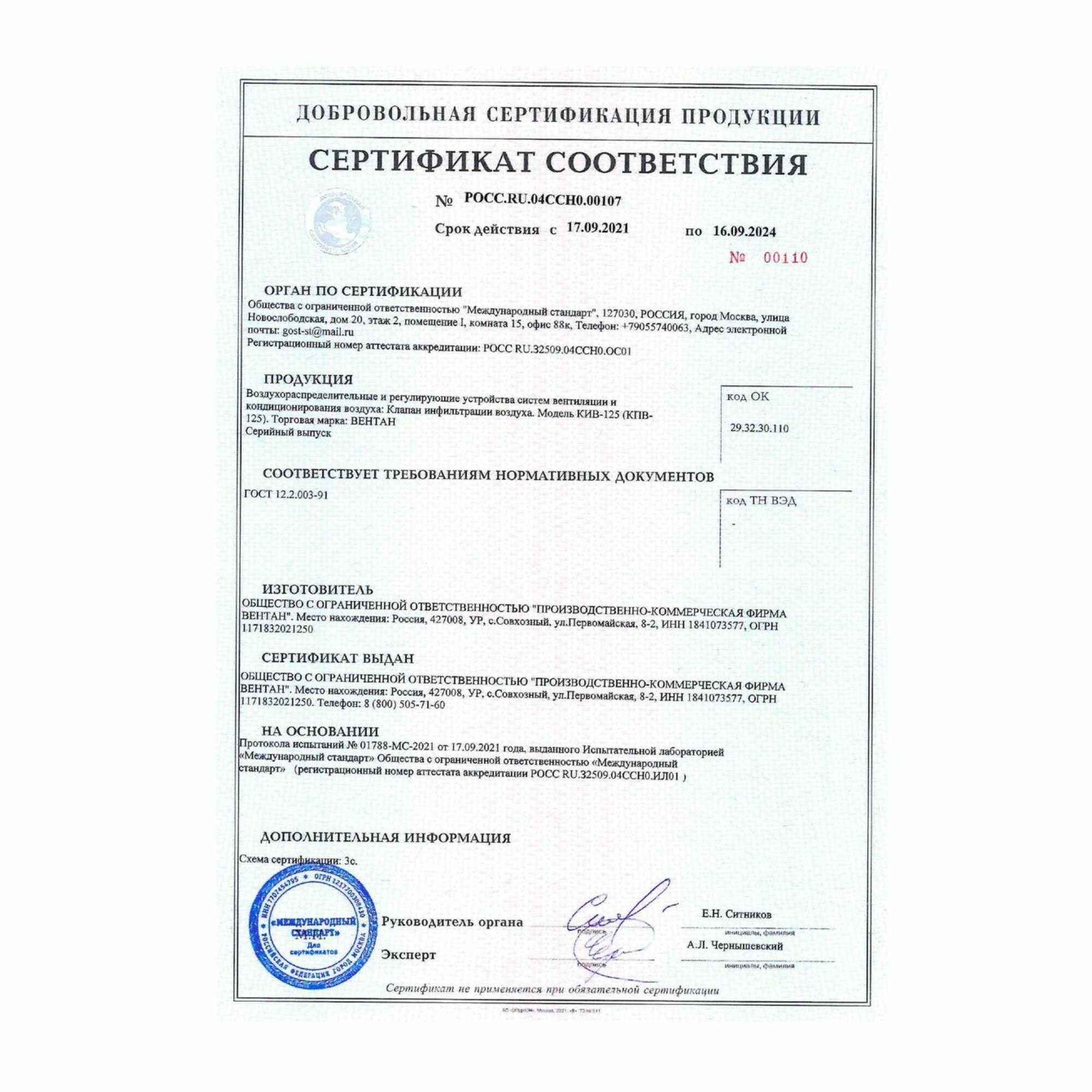 Приточный клапан КИВ-125 оголовок Quadro информация: