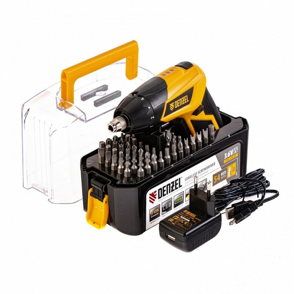 Отвертка DENZEL C. S. L-3.6-01, с аккумулятором 3.6 В Li-Ion, 1.3 Ач, 200 об/мин, с аксессуарами