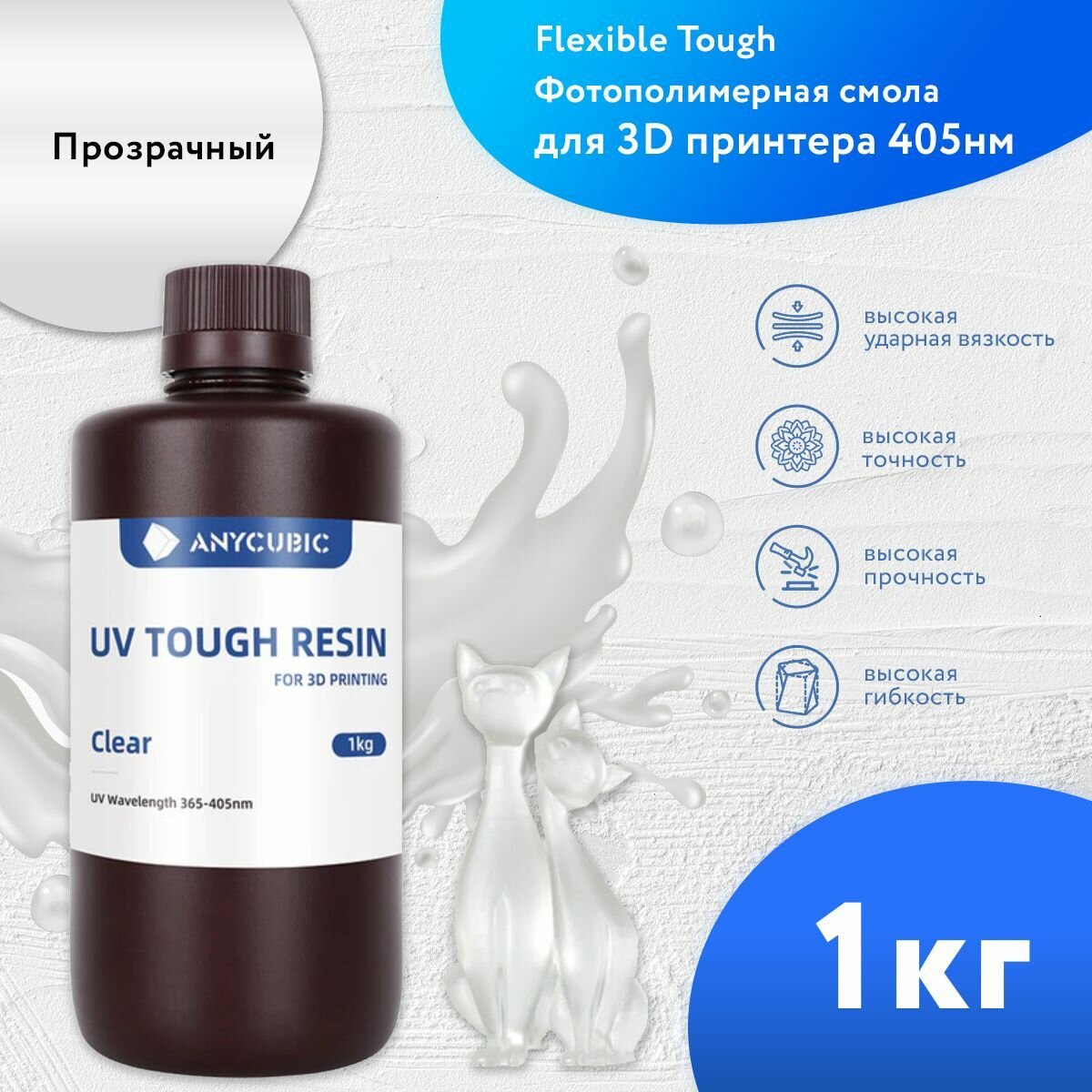 Фотополимерная смола Anycubic Ultra Tough Resin для 3D принтера 405нм Полупрозрачный (Clear) 1 литр 4 100 ₽